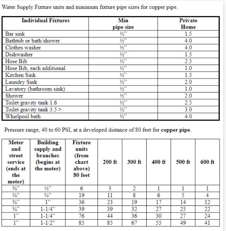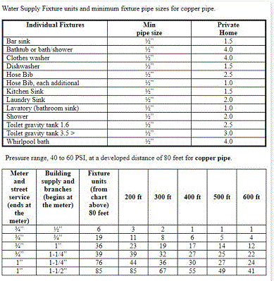 Size the pipe using demand vs. friction loss curves found in the IPC charts. Pipe sizes-Click to enlarge